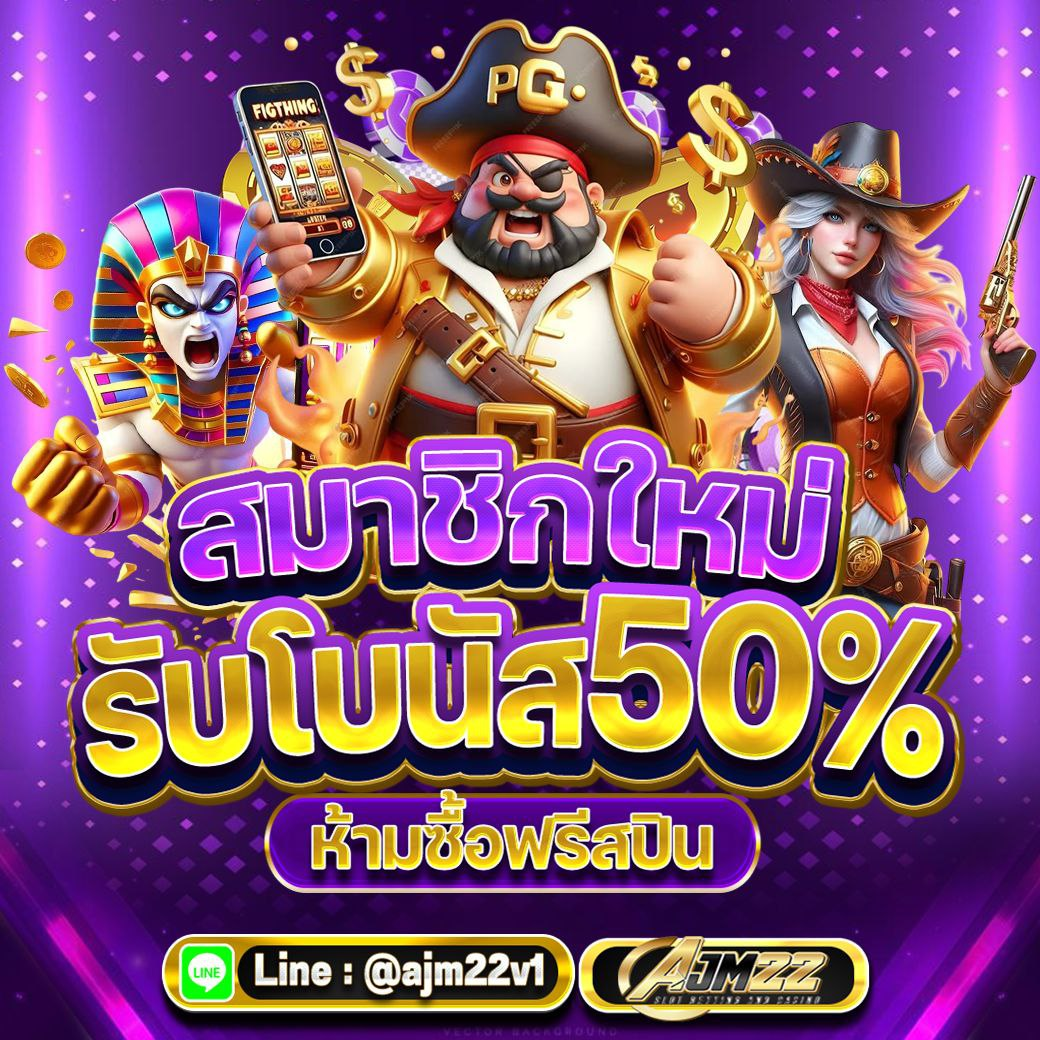 โปรโมชั่นสมาชิกใหม่ 50% โบนัสสูงสุด 500 บาท ฝากขั้นต่ำ 100 บาท สูงสุด 1000 บาท